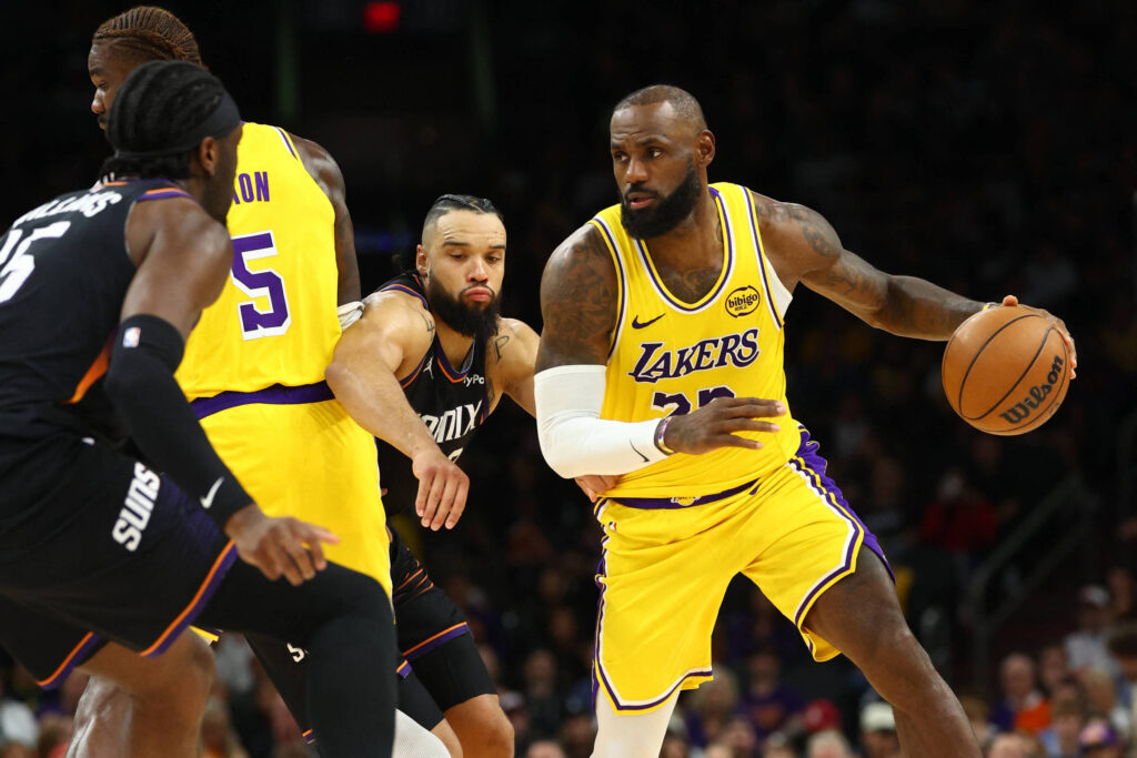 LeBron James durante partida do Los Angeles Lakers contra o Phoenix Suns no Mortgage Matchup Center, no Arizona - Mark J. Rebilas - 23.dez.2025/Imagn Images via Reuters Connect