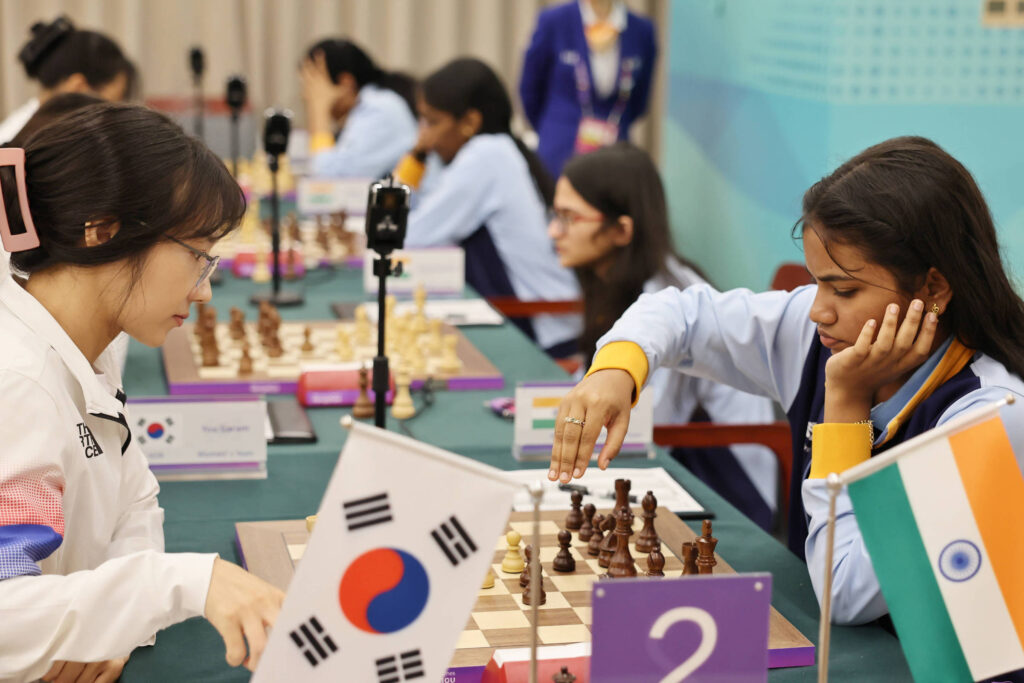 Enxadristas da Coreia do Sul e da Índia duelam durante os Jogos Asiáticos em Hangzhou, na China - Gong Bing - 7.out.2023/Xinhua