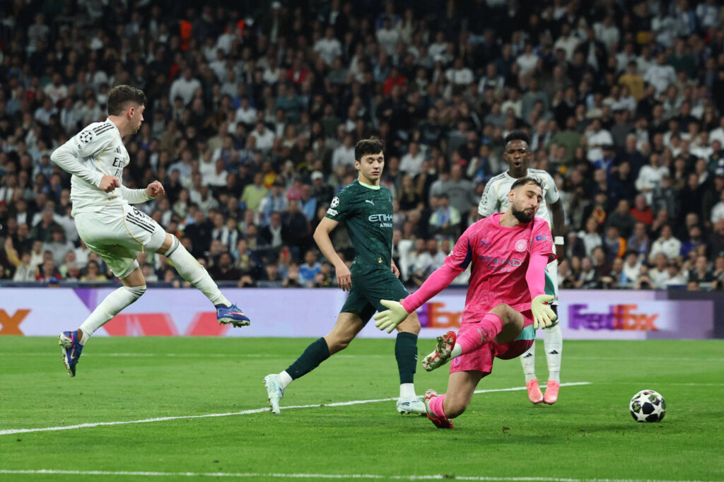 Valverde no lance em que abriu o placar para o Real Madrid sobre o City - Violeta Santos Moura - 11.mar.26/Reuters
